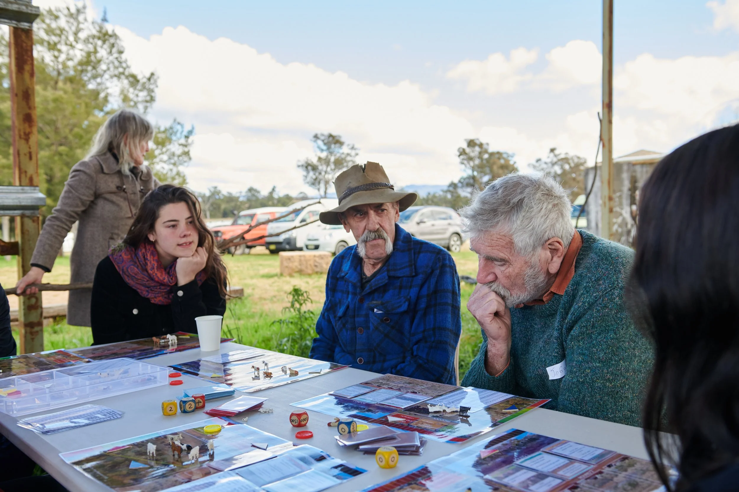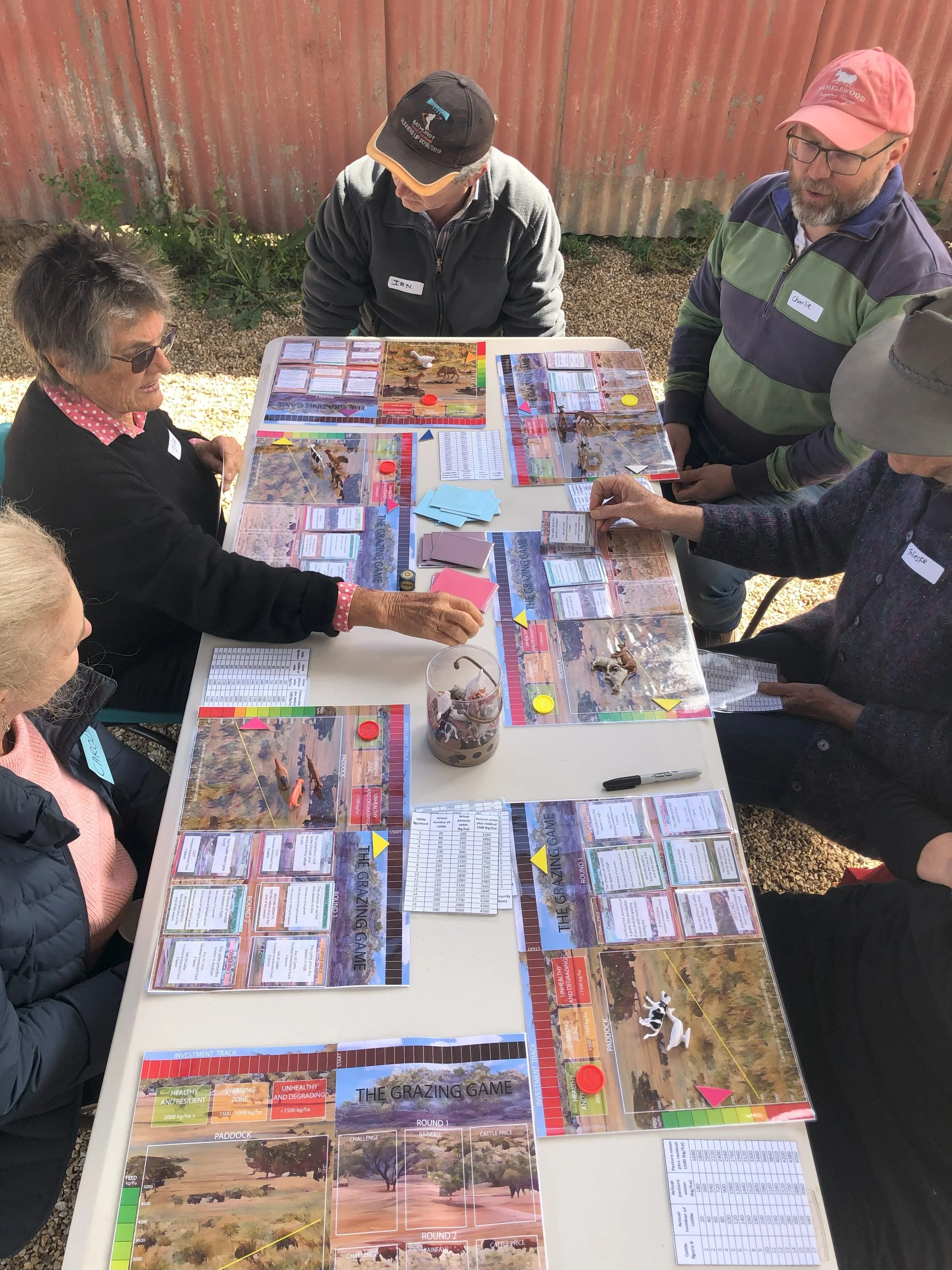 Designed for both farmers and the general public, players must reach the end of a grazing season financially ‘in the black’, without degrading their landscape. Juggling livestock numbers with available pasture, variable rainfall cards and financial challenges (including fluctuating cattle prices and unexpected farm costs!), players navigate scenarios one by one around the table sharing their decision making and questions with the rest of the group.
